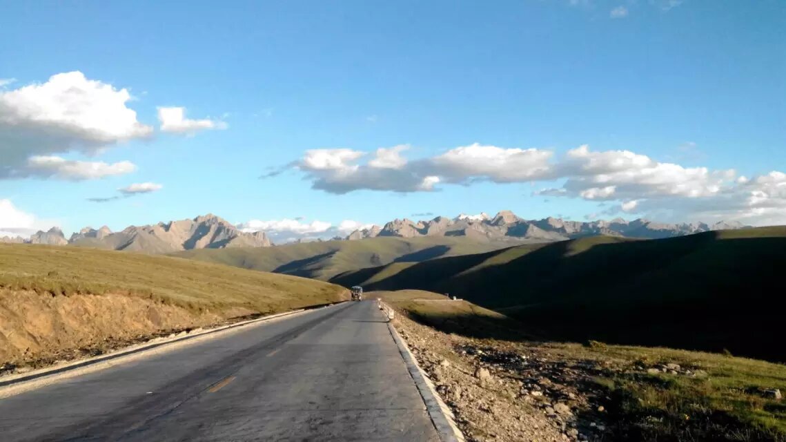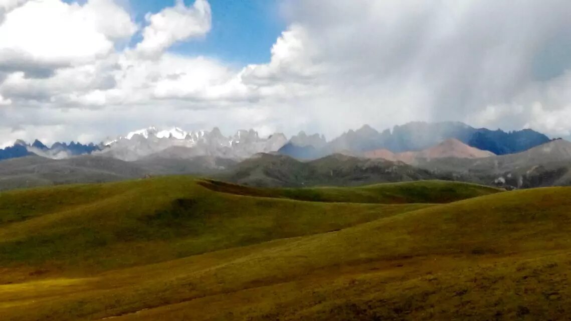 翻过垭口后,公路右侧远处群峰兀立,银光闪闪,已经让我心旌荡漾。