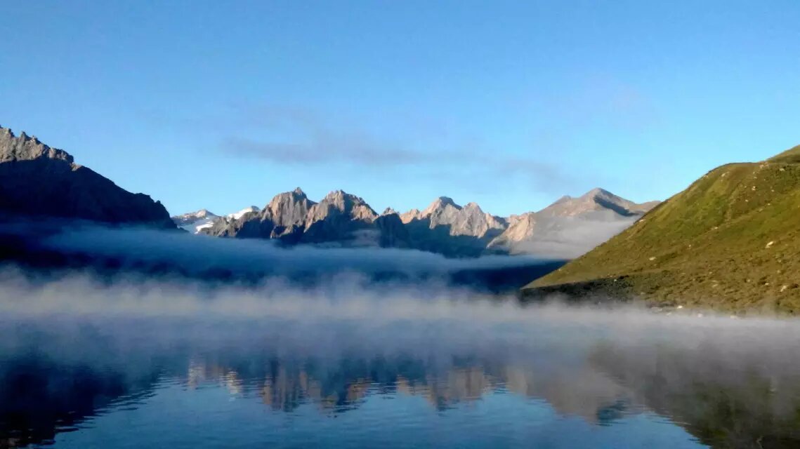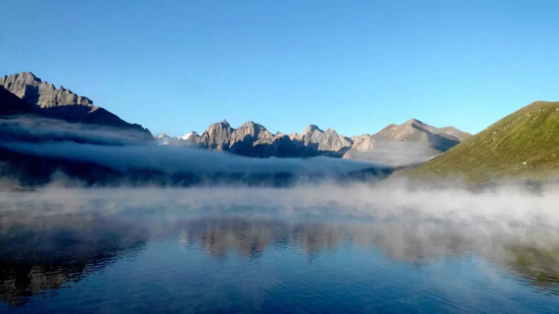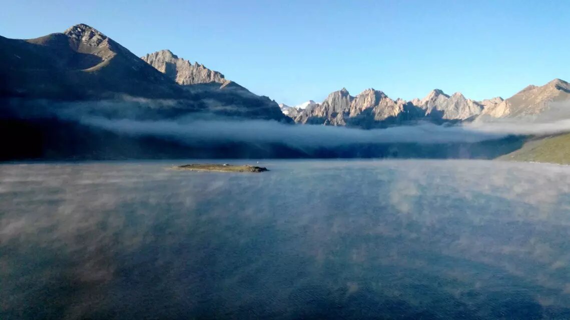 次日,早早起床,一睹年宝湖胜景。但见一抹霞光中,湖畔高耸的奇石山峰,仿佛要把青天刺破。山间云雾缭绕,云蒸霞蔚,湖水清澈见底——这般景致,可谓平生见所未见!不单是我,众多游客无不惊呼:美呆了!美极了!我在心底暗暗惊叹:如此美景,怎忍离去!放眼望去,一轮朝阳慢慢的涂抹山峰与湖水,山间云雾袅袅,飘飘渺渺,令人恍若置身仙境。众多游客在赞叹中不停的按动快门,贪婪的企图把所有的美丽都统统带走。