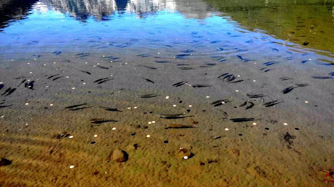 清澈见底的湖水,徜徉着灵气十足的鱼类。