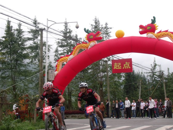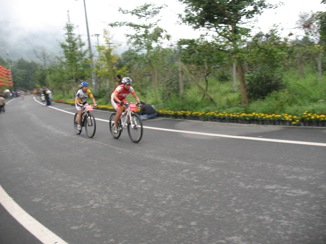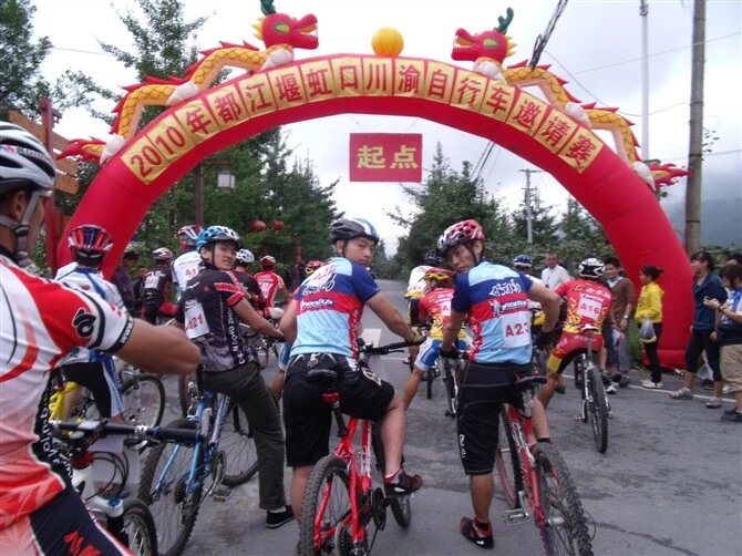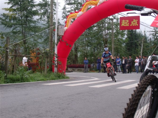 - 2010年9月24日早上,在都江堰政府领导的致词下,比赛开始了。早上起来我就把我的车全部检查了一道,吃了早饭我们几个就来到了比赛场地。比赛组别:1、男子精英组 2、女子公开组 3、男子大师组 4 男子中年组 5男子公开组.我报的是精英组,环绕山峰跑圈,2.2公里一圈,急弯16处,起步就是一个长坡,路面3米宽。不要小看这个2.2公里,一圈下来都够呛的.最主要的不是这个,所以组都是骑三圈,唯独我们精英组要骑8圈.也太猛了吧.其他组都是几十上百人的参加,精英组只有25个人,我的赛号是A22号. 第一组出发的是女子组,我们的女选手小凤出赛了,她只有17岁,有体育精神,她是骑完了整个三圈的,至少不是最后一名.当听到发令枪响后,她们开始了.我在路边看她们的时候,我惊呆了,前6名的女选手是专业的,我看他们的速度,我都可能超越不到,‘唆 唆 唆’地从我身边飞过,他妈的太强了,速度太快了。我在想女的都这么猛,更何况男子了,更不要说精英组的男子了。想起感觉压力很大,拿名次已经不可能了,重在参与吧,感受这种氛围。